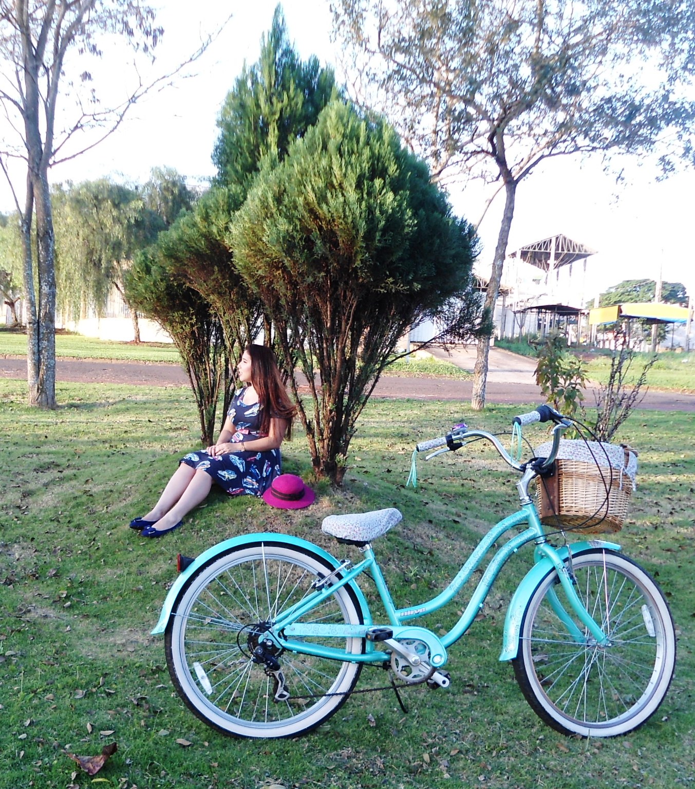 E essa é a minha bicicleta <3 Eu mandei fazer capas de tecido com estampas diferentes para o selim e para a cesta.